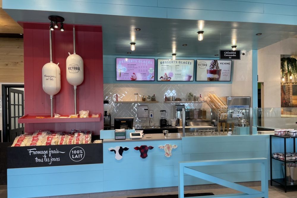 Une crèmerie et une boutique maison font aussi partie de l’offre aux clients. La boutique offre les produits phares de la Fromagerie Victoria, dont du fromage en grains frais tous les jours.