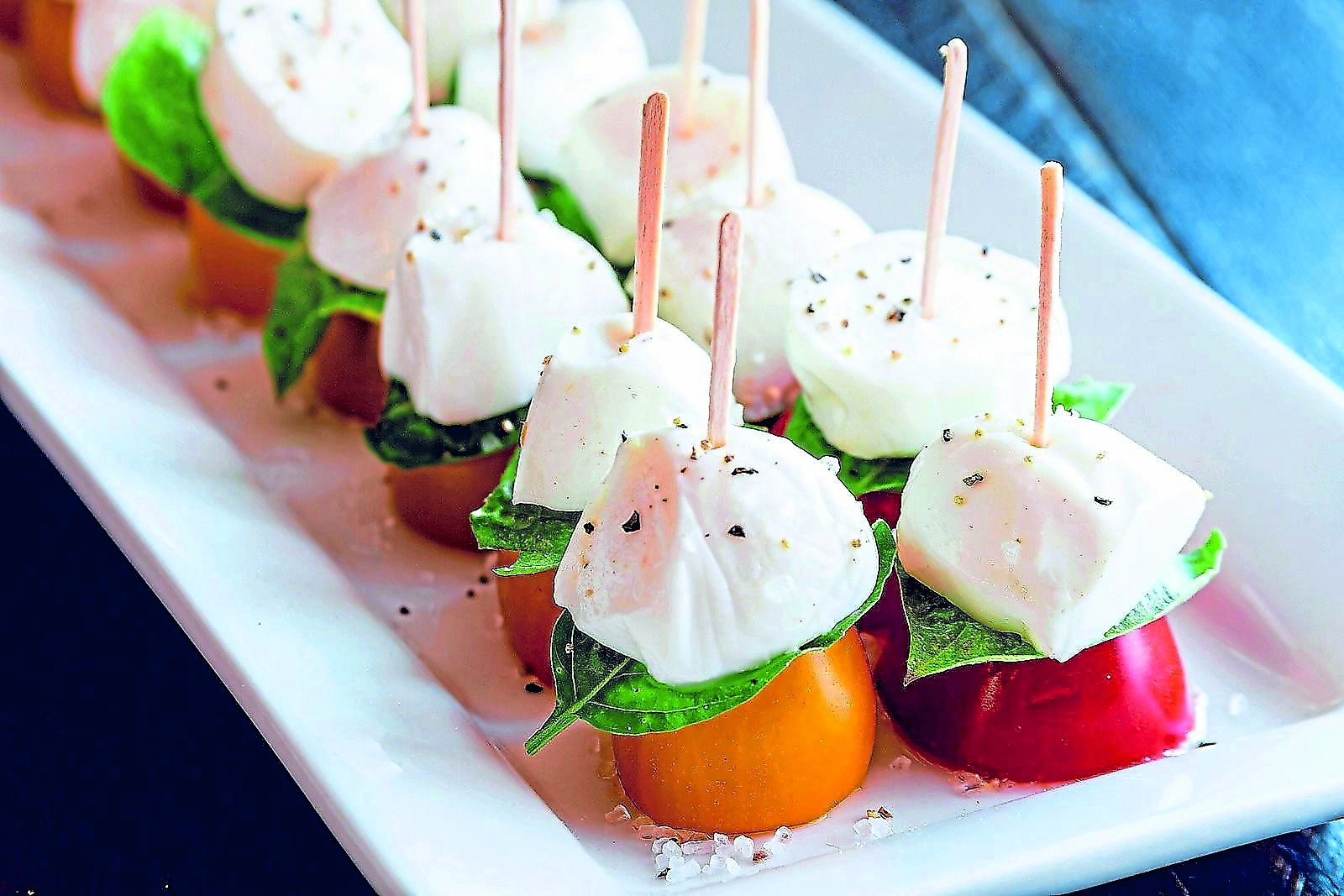 Petites brochettes aux tomates cerises et à la mozzarella fraîche