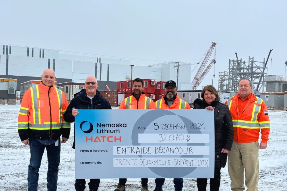 BÉCANCOUR. Entraide Bécancour a eu le bonheur de recevoir une somme de 32 070$ de la part de toutes les équipes œuvrant sur le chantier de l’usine de transformation de Nemaska Lithium, à Bécancour.