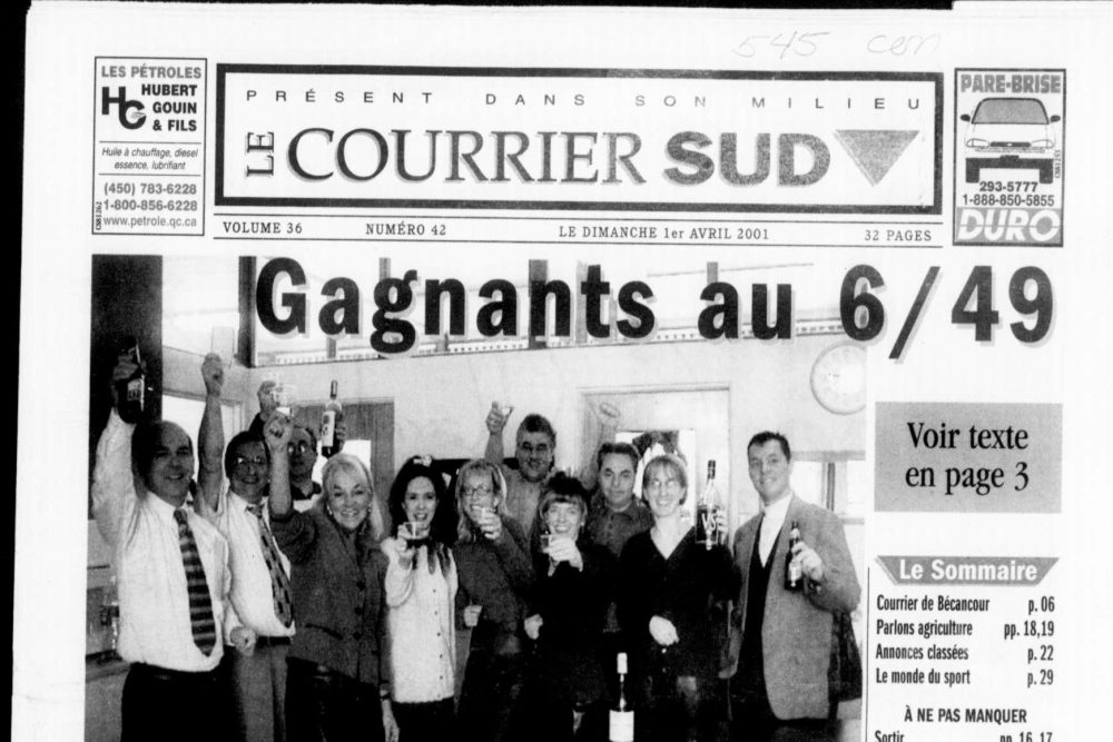 COURRIER SUD. En soixante ans d’histoire, ce sont plus de 3000 éditions que Le Courrier Sud a publiées depuis ses tout débuts. Aujourd’hui, ils sont encore nombreux, les lecteurs, à parler de l’édition du 1er avril 2001 où apparaissait en UNE la photo de l’équipe du Courrier Sud trinquant verre à la main sous le titre : Gagnants au 6/49.