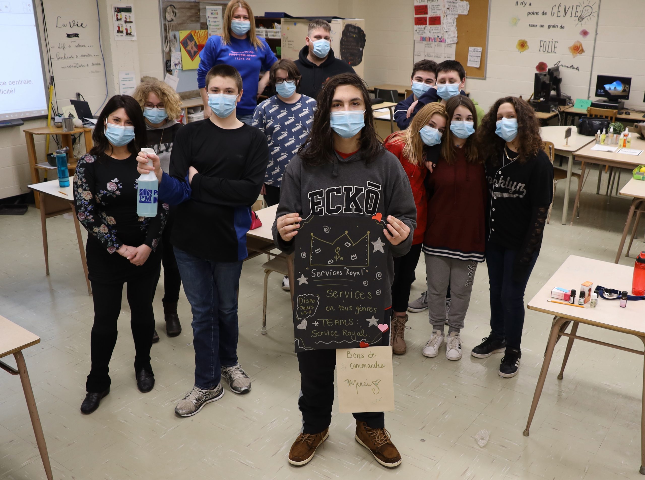 Rappelons que le projet Service royal vient d’une initiative des élèves de la classe de cheminement continu qui souhaitaient faire de la désinfection dans le but de réduire les risques de transmission du virus. Ainsi, entre autres, les élèves lavent les poignées de portes de toute l’école deux fois par jour.