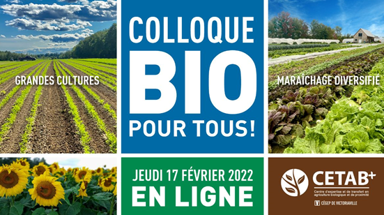 RÉGIONAL. Tout comme l’an dernier, le Centre d’expertise et de transfert en agriculture biologique et de proximité (CETAB +) du Cégep de Victoriaville proposera une version virtuelle de son colloque Bio pour tous qui, contrairement aux éditions précédentes, ne se tiendra que sur une seule journée, le jeudi 17 février.