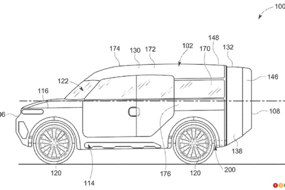 Notez que les deux brevets remis par le constructeur à l’Office américain des brevets et des marques (USPTO = United States Patent and Trademark Office) l’ont été en décembre 2022, mais qu’ils ont été rendus publics à la fin du mois de juin de cette année seulement. Un des brevets est un accessoire de camping qui se fixe à l’arrière et sur le toit d’un véhicule, avec des rallonges pouvant servir pour de multiples usages.