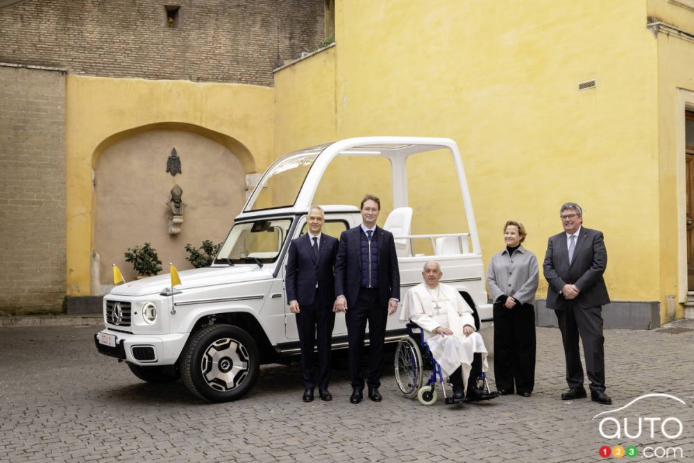 Le nouveau Papemobile électrique, de profil | Auto123.com