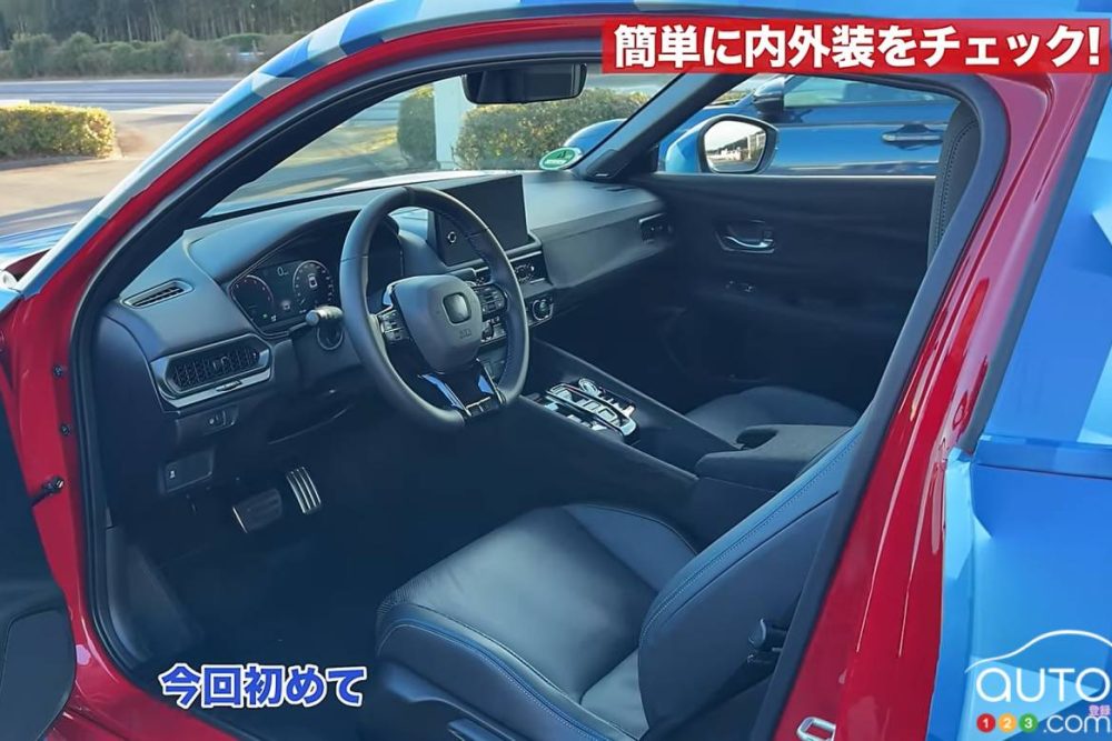 En visionnant la vidéo, vous pouvez faire immédiatement un saut à 3 min 5 s, au moment où l’animateur ouvre la portière du côté conducteur pour révéler l’intérieur. Ce que l’on voit ne nous étonne pas, car on reconnaît la signature introduite avec la dernière Civic.