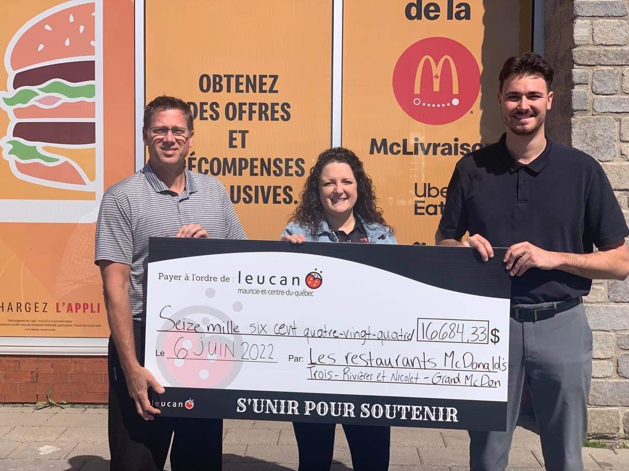 Depuis 17 ans, Leucan Mauricie-et-Centre-du-Québec s’associe aux restaurants McDonald’s de Trois-Rivières et de Nicolet à l’occasion du Grand McDon. À cette occasion, un pourcentage sur tous les achats effectués lors de cette journée est remis à Leucan et à L’oeuvre des Manoirs Ronald McDonald du Canada.