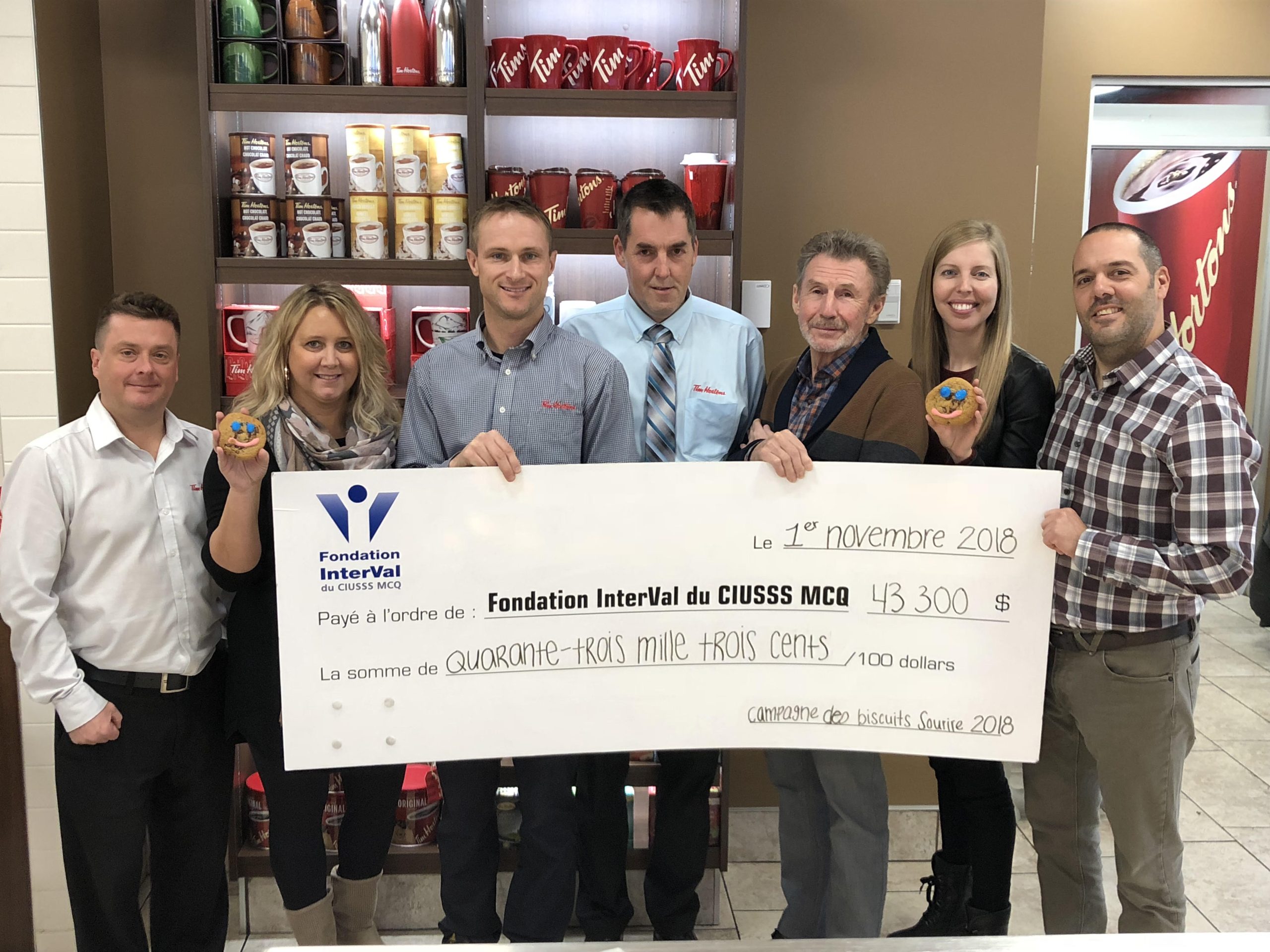 «Au nom de la Fondation InterVal, merci du fond du coeur à tous les franchisés Tim Horton’s pour cette campagne et pour votre soutien depuis 2006 qui a permis d’aider des centaines de personnes ayant un handicap physique dans la région. Nous souhaitons souligner le travail incroyable de toutes vos équipes dans la réalisation des biscuits. Nous remercions également toute la population qui, par l’achat d’un ou de plusieurs biscuits, a fait un don à notre Fondation», a mentionné Julie Gagnon, directrice générale de la Fondation InterVal.