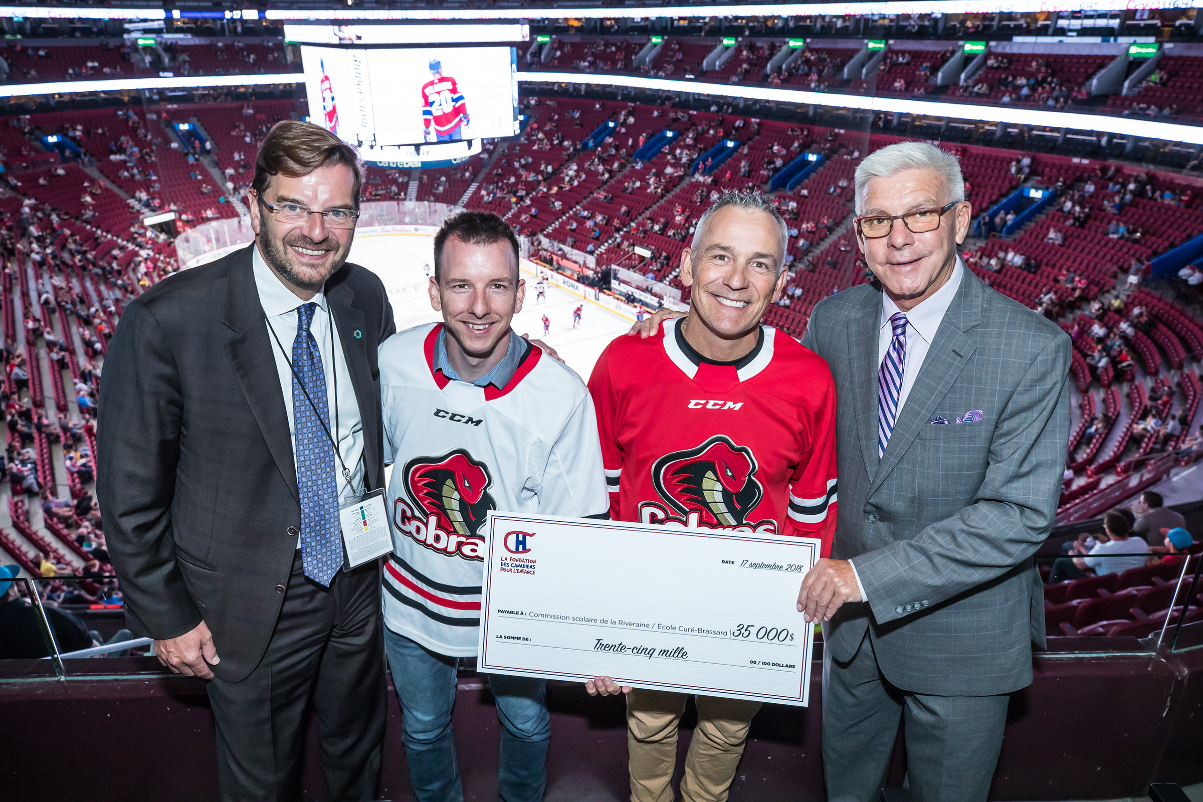 HOCKEY. La Fondation des Canadiens de Montréal a remis un chèque de $35 000 à l’école Curé-Brassard pour l’achat des équipements de hockey afin de mettre en place deux groupes d’option de hockey pour les élèves de 5e et 6e année.