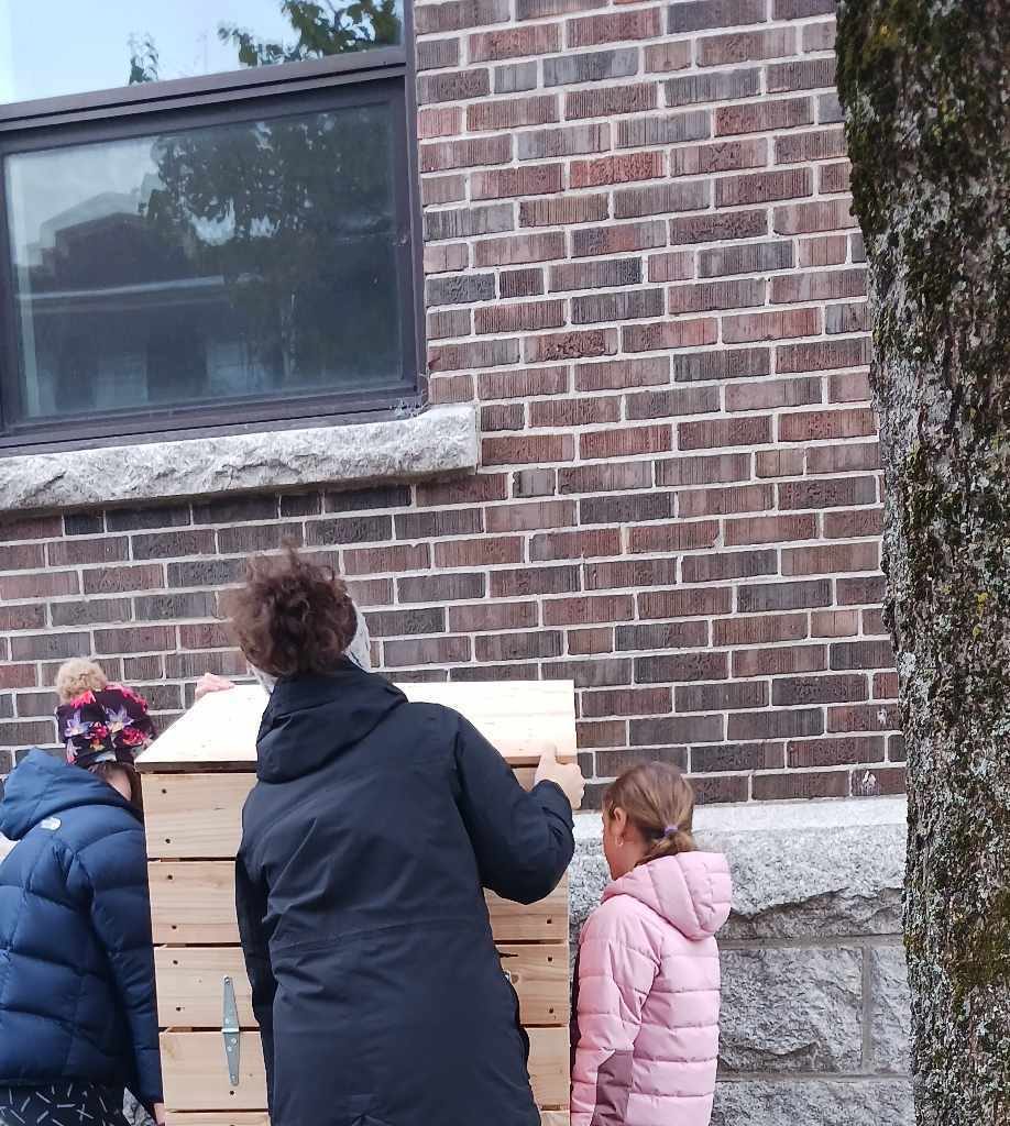 Des élèves de l’école Harfang-des-Neiges construisent un composteur