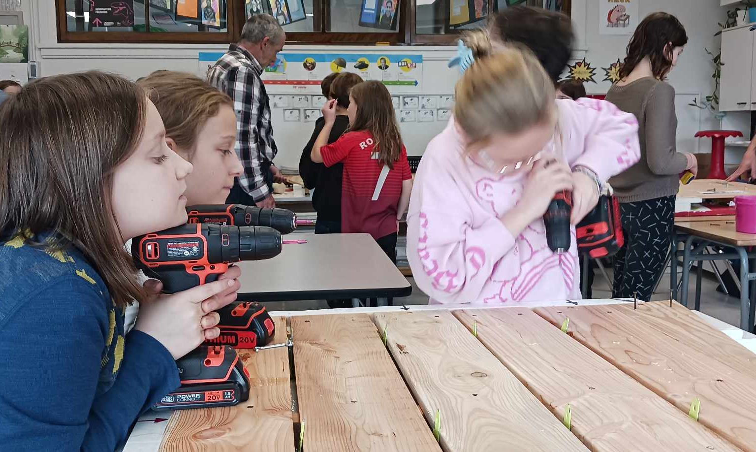 Cette activité innovatrice a été mise en place par Serge Fortier, consultant en environnement, et Donald Adam, concepteur des gabarits de fabrication. En plus de permettre aux élèves de s’initier au travail manuel, elle favorise l’intégration de deux réfugiées Ukrainiennes établies à Trois-Rivières, qui les accompagnent lorsque possible.