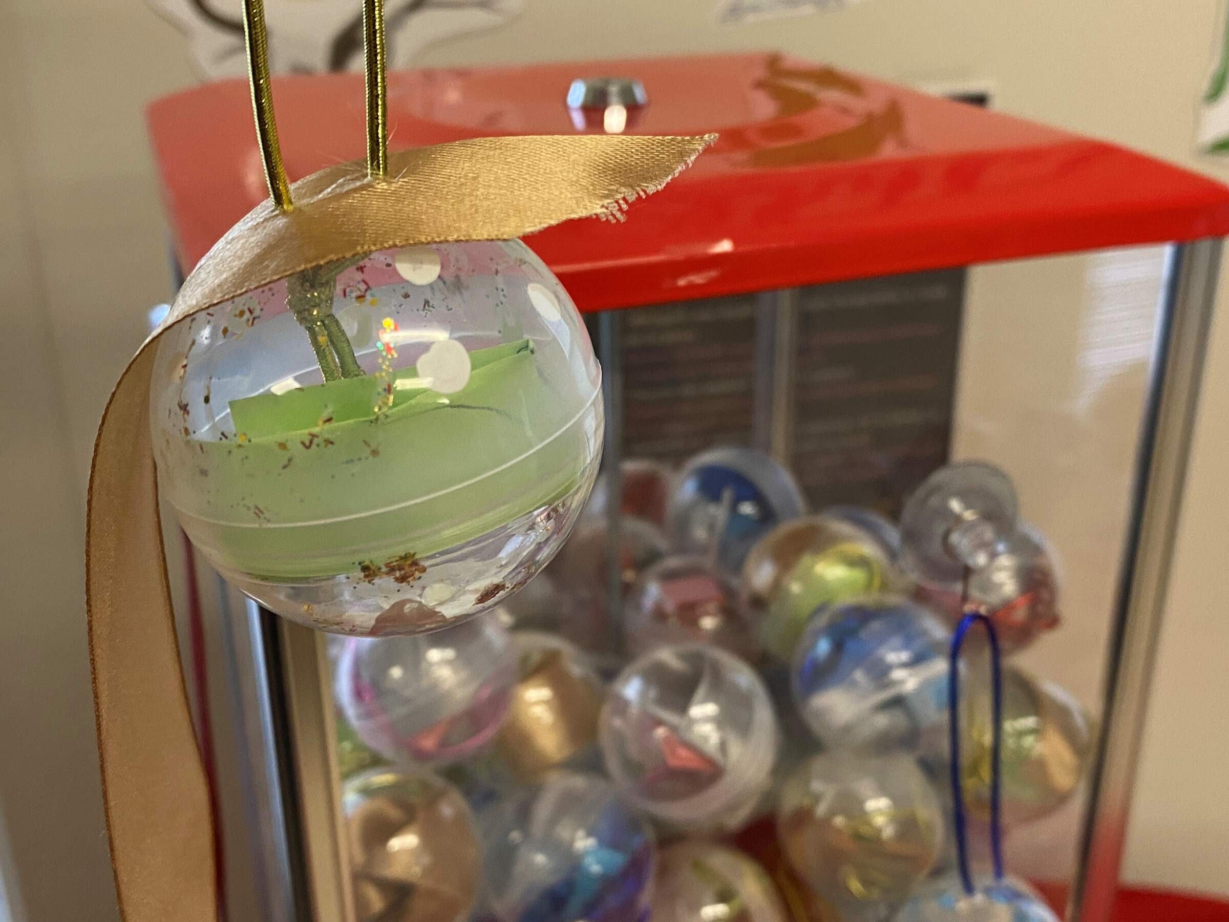 Cette activité débute… dans une machine distributrice de bonbons! Mais au lieu des bonbons, c’est une boule de Noël qui tombe en échange d’une pièce. Cependant, ce n’est pas n’importe quelle pièce qui peut libérer une des boules: ce sont celles qui sont disposées ici et là dans la bibliothèque… et qu’il faut trouver.