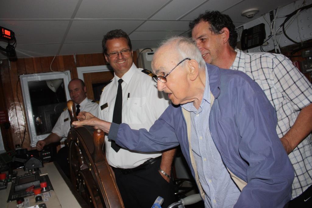 Il a chaleureusement été accueilli aux commandes du navire par le Capitaine Jérôme Gagnon et Gérard Desgagnés, Premier officier de pont. Impressionné par toute la technologie présente en entrant dans la cabine de pilotage, M. Bernier a tout de même rapidement repéré le compas et ses talents d’homme de roue ont refait surface en un clin d’œil. Depuis son retour au centre d’hébergement, il navigue encore sur ces souvenirs heureux de la soirée passée sur le bateau. (J.M.)