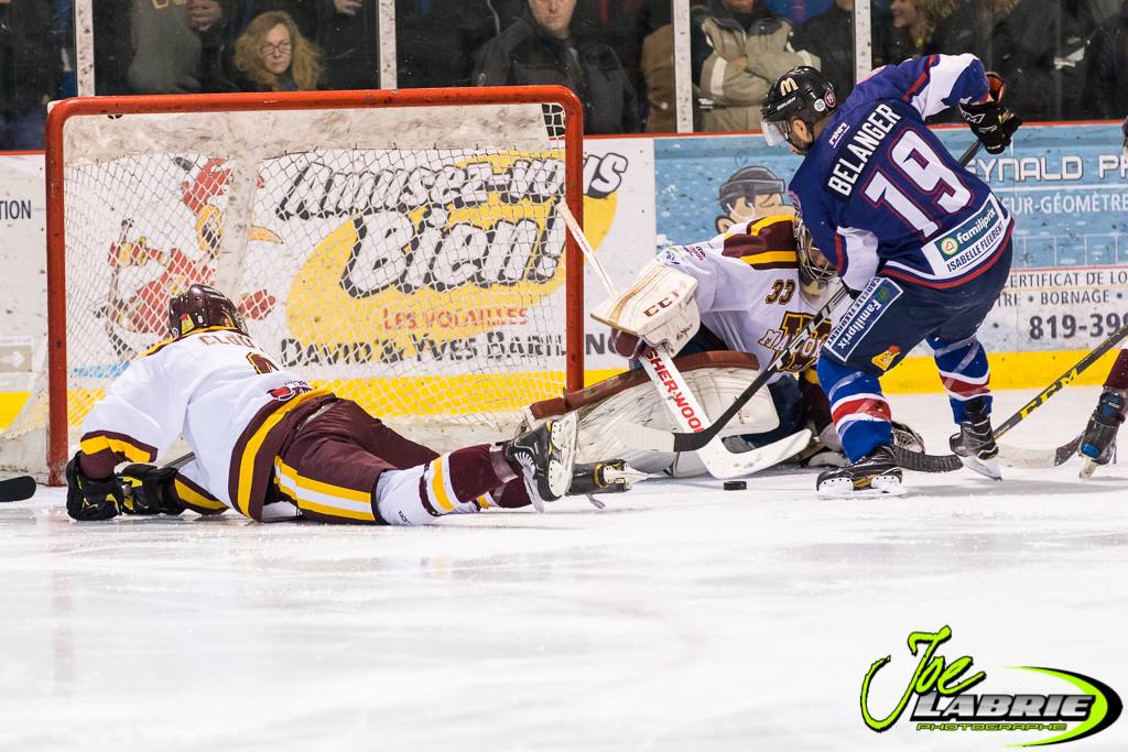 Samedi, après avoir connu un match hautement offensif, la troupe d’André Alie a dirigé 31 lancers sur le filet de Félix Guilbeault qui a cédé à deux reprises. Ces deux buts ont été suffisants pour obtenir une première victoire dans cette série. Jason Pitt a inscrit son cinquième des séries en avantage numérique lors de la deuxième période. Puis, lors du dernier tiers, Alexandre Coulombe a créé l’égalité pour Waterloo. C’est finalement Alexis Guilbault qui a enfilé l’aiguille en désavantage numérique avec à peine quatre minutes à faire lors du dernier engagement. Ce deuxième but a permis au Bigfoot d’amasser ce premier gain dans cette série demi-finale.