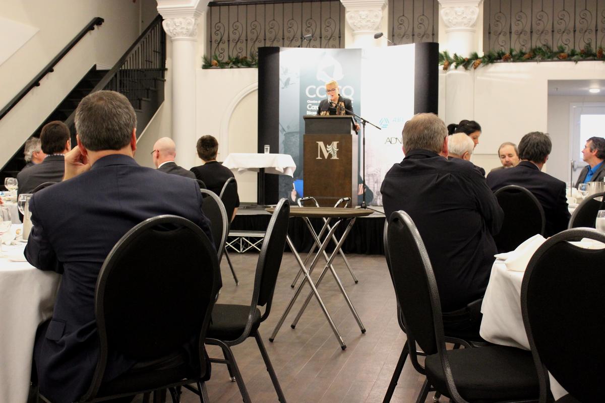 POLITIQUE. La présidente du caucus libéral, Nicole Ménard, était de passage au centre de congrès de l’Hôtel Montfort, Nicolet, ce midi, où elle a défendu le bilan économique de son gouvernement lors d’un dîner-conférence de la Chambre de commerce et d’industrie du Cœur-du-Québec (CCICQ).