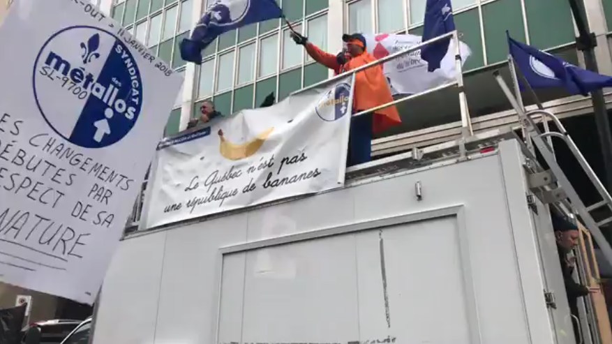 Les centaines de lockoutés sont passés dans un premier temps devant la Place Ville Marie, où sont situés les bureaux québécois d’Alcoa. Ils ont ensuite pris le boulevard René-Lévesque pour rejoindre des syndicalistes d’autres sections locales devant le siège social d’Hydro-Québec.