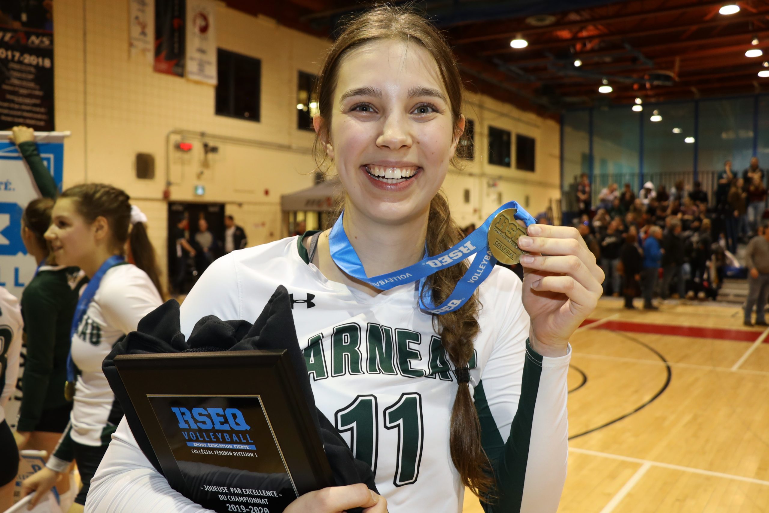 VOLLEYBALL. Avec puissance et assurance, Justine Raymond récolte ce qu’elle sème. Non seulement grande de taille, sa bonne attitude lui procure des résultats exceptionnels. Nommée récemment joueuse par excellence de tout le réseau collégial québécois, membre de l’équipe étoile du RSEQ et sélectionnée par le Rouge et Or de l’Université Laval pour son prestigieux programme de volleyball, la «grande» est reconnaissante pour tous les gens qui l’appuient vers les plus hauts sommets du sport québécois, canadien et, qui sait, international.